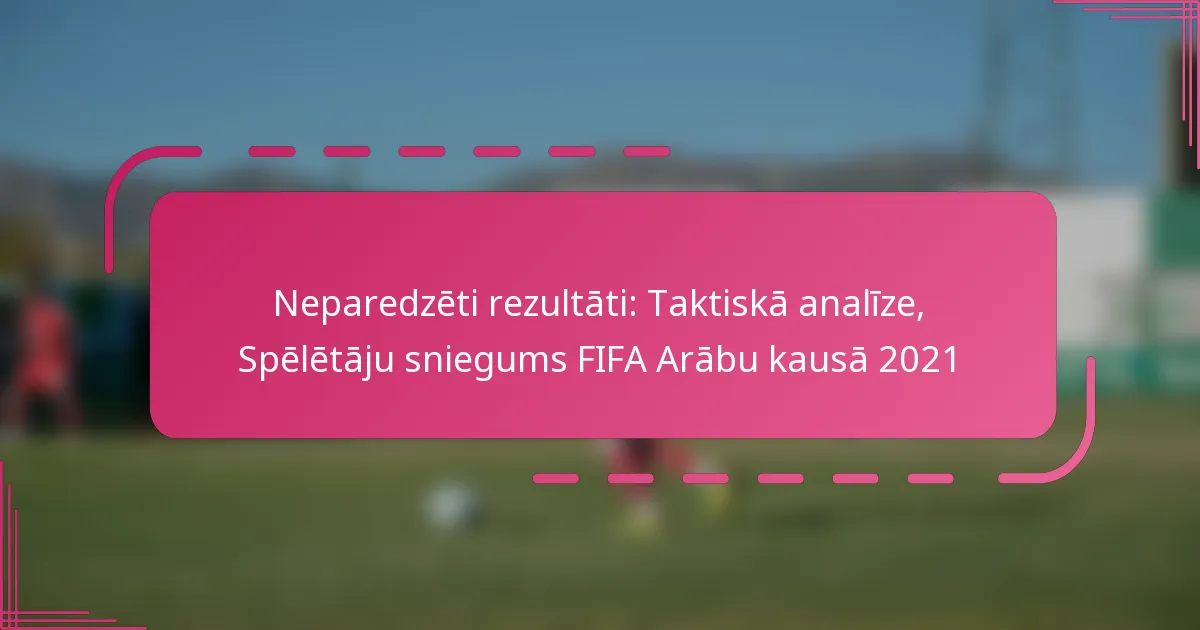 Neizšķirts mačs FIFA Arābu kausā 2021 izcēla abu komandu konkurences garu, jo neviena no tām nespēja gūt uzvaru. Galvenie notikumi, tostarp izšķirošie vārti un taktiskās izmaiņas, būtiski ietekmēja spēles iznākumu, kamēr spēlētāju statistika sniedza dziļāku ieskatu individuālajās ieguldījumos un kopējā komandas sniegumā.